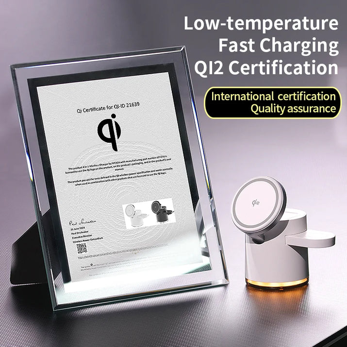 Answer 2: Yes, the charging station features a compact and foldable design that makes it travel-friendly. You can easily pack it in your bag for business trips or commutes, ensuring your devices stay charged wherever you go.